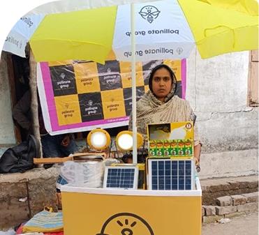 “Sunita, an acid attack survivor, supports her family by selling clean energy products. With her husband's support, she uses Pollinate Group’s digital app and social media to expand her business. Her determination and resourcefulness