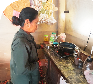 For years, Manisha relied on traditional cooking methods using LPG cylinders and firewood, enduring the cost, smoke, and hazards that came with it. But everything changed when she learned about induction cookstoves, locally known as induction chulha, from a fellow woman entrepreneur, Prativa.